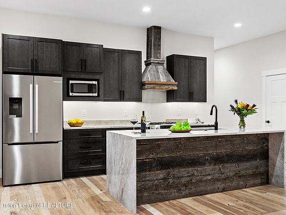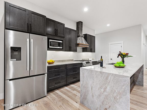 Quality craftsmanship defines this 4BR/2.5BA home. The open floor plan sports 10' ceilings, a gas fireplace, and a gourmet kitchen with Bosch appliances, solid wood cabinet, granite counters, and a large island covered with a granite waterfall countertop. The master suite is oversized with 11' ceilings, a spa like en-suite with a large shower, 6' soaker tub, water closet, dual vanity and a closet big enough to get lost in. The 4th bedroom works perfectly as an office/guest room. With a 900+ sqft insulated & heated 3-car garage you'll have plenty of room for your cars and toys. Superior construction includes extra insulation, high-performance windows, and enhanced subfloor for comfort, stability and quiet. Located in town, within walking distance of all Driggs schools.