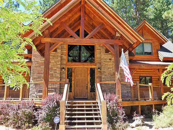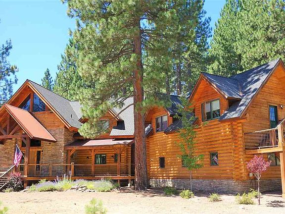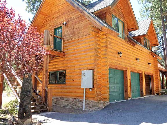 Beautiful custom log home with 3 bedrooms 3.5 bathrooms is a unique and rare opportunity nestled in the beautiful Sierras. This stunning home has an open 3,800 square foot floor plan with massive windows and stone quartzite floors throughout the main living area. This bright and modern home is ideal for entertaining with gourmet kitchen boasting granite and butcher block counter tops, top of the line stainless steel appliances, Thermador gas range and double oven. The spacious and cozy living room is perfect for relaxing with a custom stacked rock fireplace accompanied by a timber mantle. The large windows are draped with remote controlled blinds allowing for spectacular views and an abundance of light. 2 spacious master suites each with their own fireplace, en-suite bathrooms, jetted tub and custom closets. Upstairs loft makes for spacious game room. There is also a guest bedroom, full bathroom and another room that could as an office or media room. An open walkway leads to a large bonus room which can be used as a bunk room, craft room or anything that fits your lifestyle. The possibilities are endless! The sun room is perfect for enjoying the outdoors all year long and the wrap around porch is ideal for entertaining outdoors. There is plenty of space for cars and toys in the spacious 3 car garage. this is an incredible opportunity you do not want to miss!