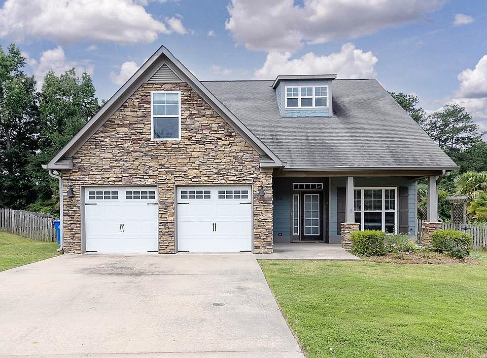 Relax in style at your new home in North Columbus. This 2575 square foot home has 4 bedrooms and 4 full bathrooms. The primary suite is on the main floor has dual vanities, separate shower and whirlpool tub, two closets, along with a private door to the backyard covered patio and pool. The main floor has brand new LVP throughout, an open concept kitchen, a stacked stone fireplace, and a separate dining room. Kitchen features a large peninsula with granite countertops and glass tile backsplash, stainless steel appliances, lots of cabinets and a pantry. Upstairs there are 2 bedrooms, 2 full bathrooms and a bonus room. Your eyes will be drawn to pool outside, but don't miss the view of the lake and the sizeable yard, Plenty of storage in the 2 car garage.