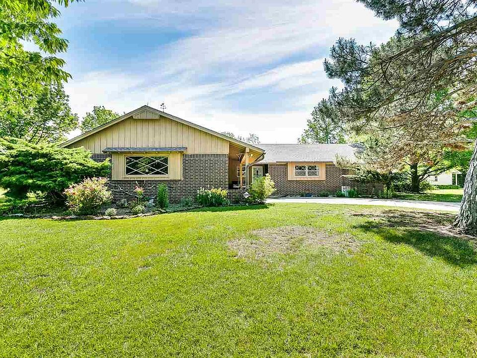 Beautiful 1 Acre Property and mostly brick ranch home loaded with trees and a gorgeous wide open POND VIEW just outside your front door. Private park-like neighborhood. This home offers 3 bedrooms, 2 1/2 bath, oversized two car garage all nestled toward the back of a quiet cul de sac. Nice curb appeal with side load garage. Kitchen has granite counter tops, newer tile backsplash, tile floors and an oversized extra-wide double oven/stove perfect for those large family meals. Lots of house for the money! Two eating areas and three living areas to choose from in this 2800+ sq foot beauty! Have a casual breakfast in the "eat in" kitchen or entertain in style in the formal dining area with hearth room and main floor family room. Cozy up to the gas fireplace on cold winter nights. Don't miss the large living room on the main floor with an 11 foot picture window overlooking your lush private backyard. Plenty of room to roam and appreciate on this one acre lot adorned with mature landscaping! You'll even find 3 cherry trees, 1 peach, 1 apple, 1 apricot tree as well as black berry bushes. Beautiful roses and lilac bushes too. Three main floor bedrooms are all large and spacious. Huge hall bath is light and bright. All three bedrooms have oversized windows with decorative wood insets and 14 inch deep window ledges perfect for displaying cherished items and family photos. Master bedroom includes a private master bath with separate tub and shower and also a spacious walk-in closet. Lovely view of private treed backyard from master suite too! Basement features a 26 x 14 family recreation room with brand new carpet and fresh paint. All kitchen appliances stay with the home, even the nice washer and dryer. You will love the 1/2 bath and main floor laundry, both located just off the garage entrance. Windsor Park Addition is a beautiful and peaceful neighborhood with two breathtaking ponds. The evening strolls are relaxing and soothing. Hurry schedule your showing today. These types of properties don't come on the market often. Same owner past 17 years.