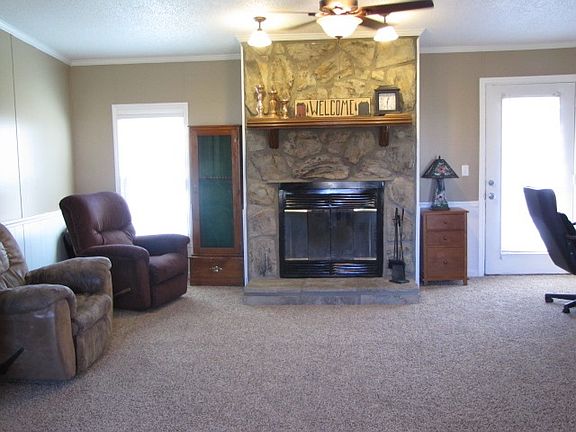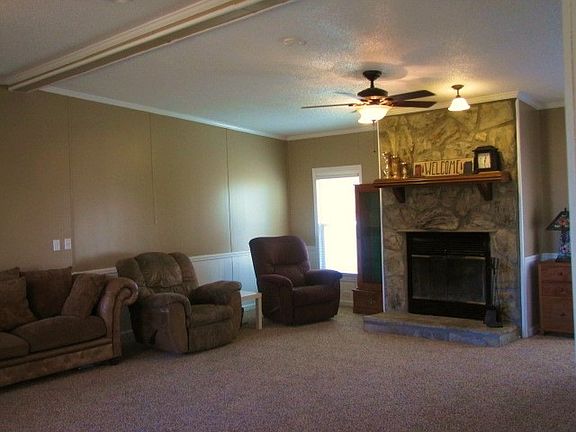 Beautifully maintained home on nearly one acre lot. Amazing property with fruit trees and plenty of room for a garden. Storage building with electricity. Perfect gardening area with compost near the storage building Lake community less than three miles to boat ramp and state park. Spacious rooms. Wood burning fireplace plus a ceiling fan in the living room. Kitchen offers ample cabinet space, tile backsplash, breakfast bar plus plenty of work space. Open to large eating area. Plenty of room to prepare meals and entertain. Appliances remain. There is a separate laundry room. Three bedrooms, two full baths. One bedroom currently being used as a play room. Master bedroom offers two closets. Master bath with shower, garden tub and newer flooring. Gorgeous property....... Lovely views to enjoy from the covered front porch or back deck. Move in ready home! Home has a permanent foundation.....will quality for FHA/VA financing.