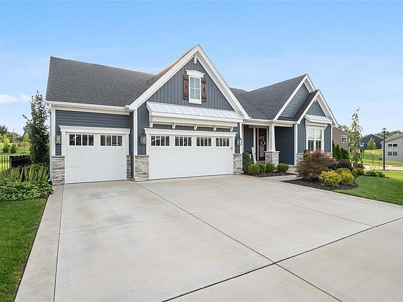 This 2019 St Jude Dream Home is one you won't want to miss. Whether it's the 12 foot ceilings, hidden/vented speakeasy room, 890 ft garage or the hockey rink this home has something for everyone. Kitchen flaunts a massive island, custom cabinetry, LED lighting, double ovens, gas stove, walk-in pantry & high end appliances. Den features built in bookshelves, stone floor to ceiling fireplace and access to the screened porch. You will love the split bedroom floor plan which makes the primary suite secluded. Enter from the main level laundry, through the his and hers closets. Primary suite also provides access to the deck. You will be blown away by the primary suite bath which includes multiple shower jets, tub & skylights. The finished basement has a 4th bed, full bath, beautiful stonework in bar area, kegerator, rec room w built in sound and yes even a hockey rink! Outdoors feels like an oasis w gas tiki torches, firepit, deck and grill. Worry free living as HOA handles lawn & landscape. Additional Rooms: Mud Room, Sun Room