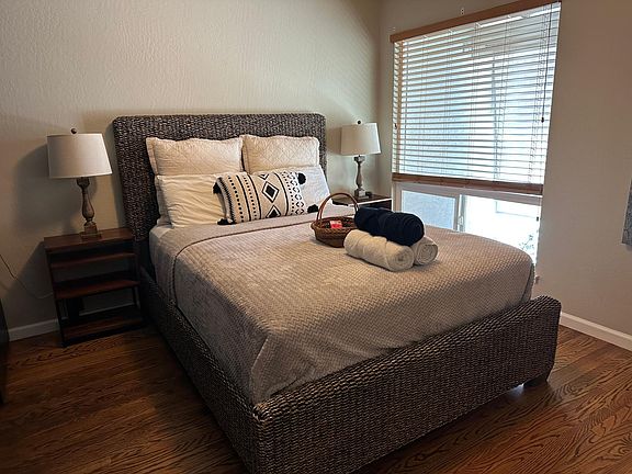 Warm contemporary home with craftsman elements sitting in a quiet residential setting about 1 mile from charming downtown Pleasanton, which has several tasty outdoor dining experiences and shopping venues. Great hiking nearby, and easy access to Livermore outlets and wine region. This clean home has predominantly hardwood floors, but also some carpeting and tiled bathrooms. No smoking, vaping or pets allowed. Landlord pays all utilities including wifi. $1500 month-to-month lease for individuals. The available bedroom has built-in desk and cabinetry along with hardwood floors, a queen size bed, and a near full length mirror. An additional hallway closet is available for your use. Our home has medium-sized kitchen with a large nook area, full dining room, living room, and a very large yoga/entertainment room. Washer and dryer are in the garage. The large backyard has a quality basketball hoop and there is a beautiful park just 4 houses up the street. Off street parking is easy and plentiful. Owner pays all utilities, including internet and wifi. No pets allowed. No smoking or vaping allowed.