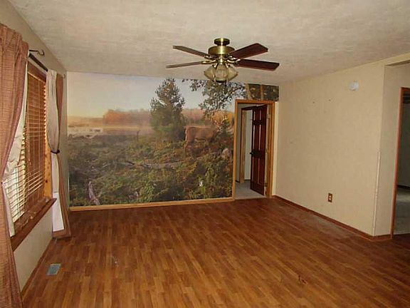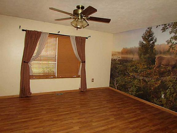 Beautiful wooded hilltop property with newer ranch 3BR 2BA home! Lots of cabinets in the kitchen with center island, open to Family Room and Great room! Some newer flooring. Has separate laundry/utility room. Room to build a garage. Hill is very steep, may need 4WD. Driveway is recorded easement on front property.