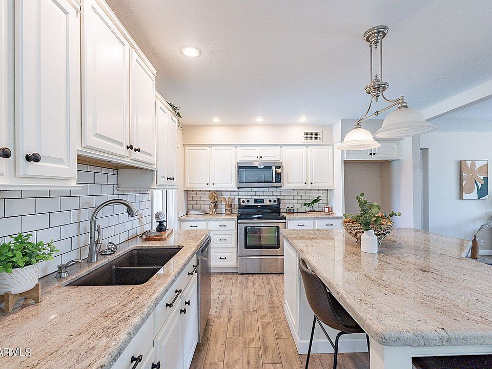 This charming, move-in ready 3 bed, 2 bath is the perfect place to call home. Conveniently located Mesa home with all the upgrades you are looking for, No HOA! Newer Roof and newer HVAC! The open floorplan with tile flooring throughout that flows through the living room as you enter the front door and into the kitchen. Stylish eat-in kitchen with stunning white cabinetry, quartz counters, tile backsplash & Stainless Steel Appliances. Clean paint & fixtures throughout. Bathroom has been updated with new vanity & tile surround. Generous-sized yard, with crystal clear pool.