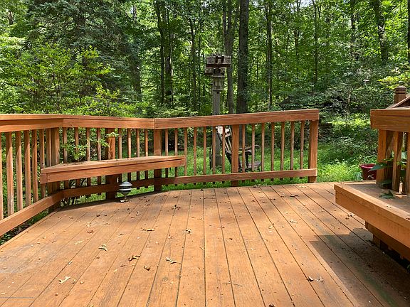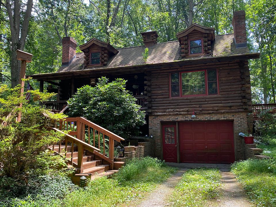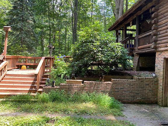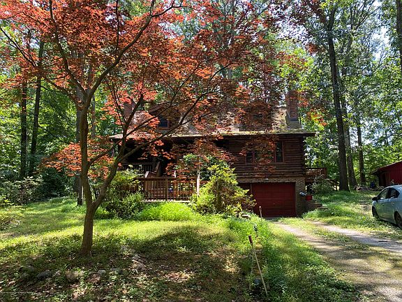 Calling all investors! Ultimate peace and privacy await in this charming log cabin on a secluded wooded lot. This unique three bedroom, two bathroom home sits on 3.5 acres of land and features cathedral ceilings, two large porches, a soapstone wood burning stove, antique griddle, and an indoor hot tub. Lower level has an open floor plan with a built-in dining table and plenty of natural light. Pine floors and exposed logs give the home a resort-like feel. Home needs some TLC, but it has amazing potential. You won't find another house like this one; this is a rare find that will not last!