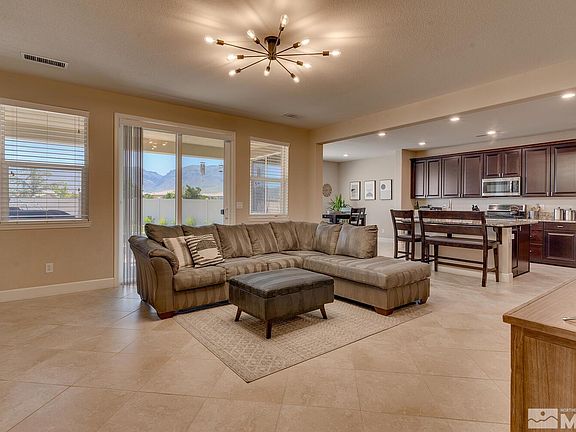 Welcome to the beautiful community of Damonte Ranch located in South Reno. Damonte Ranch is a growing community with shopping and restaurants nearby and all different types of outdoor activities from biking to hiking. Coming soon to Damonte Ranch is the strategically planned outdoor town center in Downtown Damonte that will include retail shops, restaurants, class-A office spaces and so much more. As you enter into this community you enter the Dry Creek neighborhood., Tucked away at the end of a cul-de-sac, you arrive at this newer, well kept home boasting 3,388 square feet and large level lot featuring four bedrooms, three and a half bathrooms, an office/ den, large bonus great room and three car tandem garage. Passing through the front door this open floor plan features the primary suite, an additional en-suite plus an office/ den on the main level of the home. The oversized primary suite features a walk out to the backyard and is complete with a large bathroom with walk-in shower, soaking tub and two large closets. Also on the main level of the home is a large open concept living room, kitchen and dining room combo featuring granite countertops, tile flooring, large walk-in pantry, powder room for your guests and separate laundry room that passes through into the garage. Upstairs you are greeted by the other two full size bedrooms that have custom designed and engineered lofts for children for the ultimate use of space and bedroom/ playtime experience. Also on this second floor of the home an additional full size bathroom and large bonus area currently being used as a space for children of all ages to let there imagination go wild or curl up and watch a favorite movie or show. Completing this unique property, the backyard stands out from the others in the neighborhood featuring a large backyard with surrounding mountain views plus a vast side yard perfect for your summertime barbecues and backyard activities. Call us today to schedule a private showing of this one of a kind home.