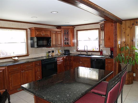 Gorgeous home set on 1.5 acres providing great views of Lake Erie, Canada and downtown North East. The open concept of the kitchen, dining and living room details curved beams between rooms and new heated tile flooring. The remodeled kitchen features cherry finished cabinetry, granite countertops, a large granite top island and 2 spacious pantries. The walls and ceiling of the bright living room are presented with California Redwood and is wired for 7.1 surround sound. With large windows on 3 sides, the living room has a black granite hearth complimenting the wood burning fireplace. Plush new carpeting is installed in the living room as well as both upstairs bedrooms which are finished in knotty pine. The 13' X 22" master bedroom has a private entrance to the upstairs bathroom along with large his & hers closets. The upstairs bathroom features a large jetted tub, heated tile floor, corner rainshower, fantastic lighting and views. Wired for HDTV and surround sound the bathroom is a private getaway in itself. The partially finished full basement has a large bedroom with 3/4 bathroom, 13' X 33' workshop and ample storage areas. The basement includes an Armstrong high efficiency HVAC system, 200A service with backup generator, water softener, washer and dryer. Included with the property is an all steel 44' X 80' building. Fantastic as a workshop and storage area it has a 2nd floor office with a small 3/4 bathroom. Attributes for the building include a 10' X 7' cast steel worktable, chain falls and a plow jeep for the driveway. A solar heating system on top of the building heats the private 33' pool with a large deck. Great for end of the day relaxation and beautiful sunsets. The home has perimeter flood lighting and is surrounded by beautiful landscaping, and numerous gardens Situated minutes from North East and major highways this property must be seen to be appreciated.