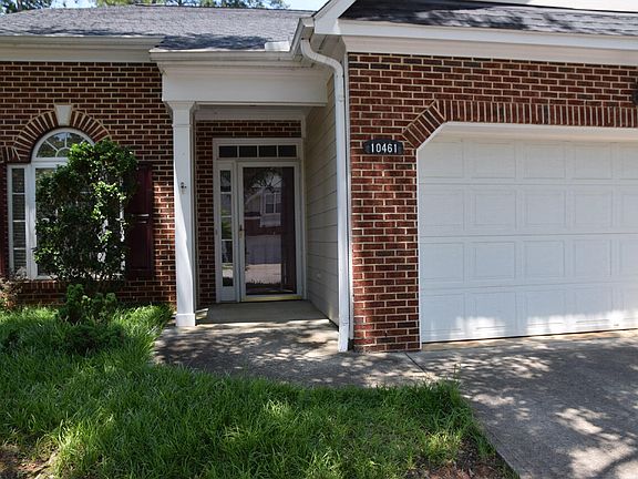 Light and bright one story end unit townhome with 2 car garage! Hardwoods lead from foyer into fully equipped kitchen with smooth top stove & pantry. Cathedral ceilings and gas log fireplace enhance the family room. Spacious sun room with luxury plank flooring is perfect for enjoying a cup of coffee, reading or enjoying the private treed view behind your home. Door from sun room leads to large brick paver patio for those summer get-togethers. Great location near Wake Med, I-540, shopping and restaurants.