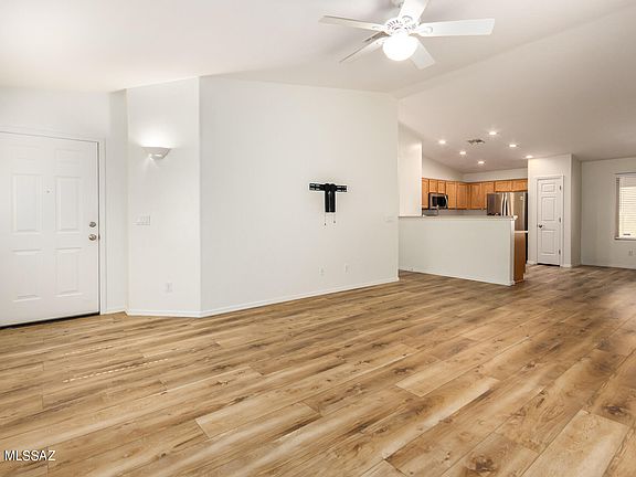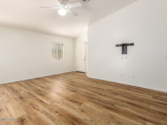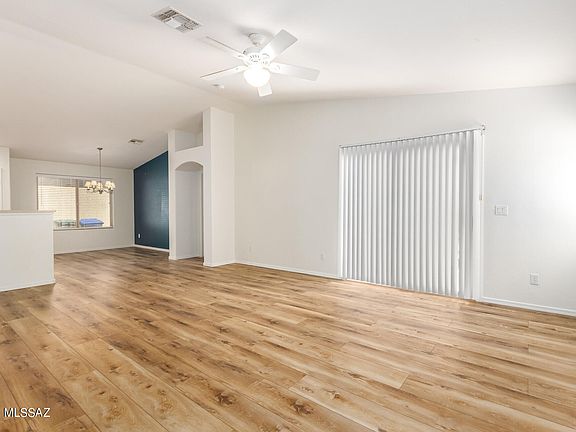 Come and check out this turn key home in the Rita Ranch area. As soon as you walk in you will notice the wood laminate flooring that is throughout the entire home. This home offers a large great room, split bedroom floor-plan, ceiling fans and blinds throughout. The HVAC is 2 years old and the water heater is about 4 years old. The kitchen offers newer stainless steel appliances (Double door fridge with bottom freezer and the range offers a double oven). The master bath offers a walk-in closet, double vanity, and separate garden soaker tub / shower. In the backyard you will enjoy the large trees and covered patio.