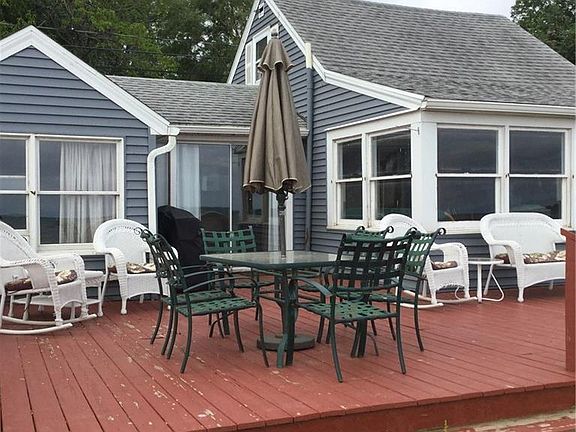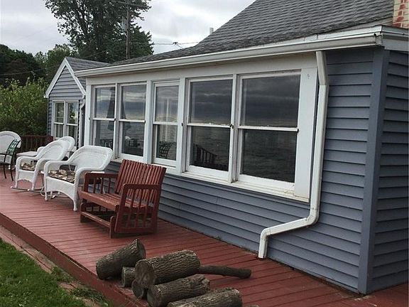Lakefront cottage with all furnishings. Private waterfront area. Two bedrooms down and one upstairs. Solid breakwall--no erosion. Easy access to water. Garage across lane with a deep lot. Trash pick-up included, cable tv. Some electric heat. Portable a/c. Wood burning fireplace. Large deck on lake side. Be ready for the season by purchasing now.