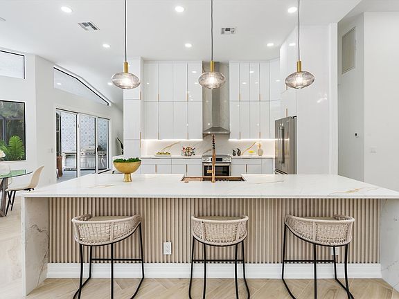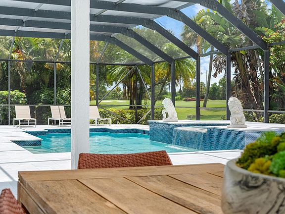 Revel in this meticulously and fully updated estate home in StoneBridge Country Club on the golf course. Absolutely stunning property with immense pool featuring brand new diamond bright and scorn marble decking spanning the entire outdoor area! Thor stainless steel outdoor kitchen including wet sink and wine fridge, mosaic tile, and hot tub. An entertainers dream come true! Inside, the floors are porcelain-wood look laid in a custom chevron style throughout. Kitchen features all brand new BOSCH appliances, waterfall quartz counters, stainless hood and exhaust and more. Master bedroom highlighted by infinity tile thresholds and a huge bath suite with electronic bidet toilet. AC units 2022 and 2024. Roof 2009 sealed and in perfect condition. Pool heater 2024. See Docs for Club fees.