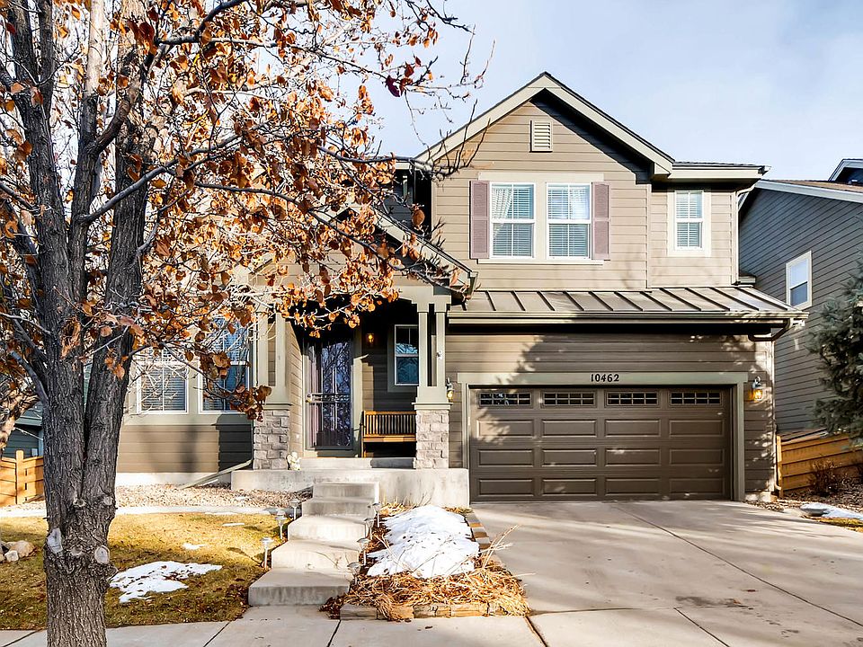 Discover your new home in this gorgeous house in highly desirable Reunion of Northern Commerce City, Colorado. Step inside and immediately be welcomed by warm hardwood floors, an incredible open feel with dramatic ceiling heights, designer colors and a perfect flow within rooms. This 3 bedroom, 3 bathroom home features an eat in kitchen, a cozy family room with fireplace, a relaxing master suite and bonus space in the loft. Enjoy not having to shovel as much snow in our Colorado winters with this WEST facing home and enjoy your evenings on the incredible back deck with no neighbors directly behind you. With large secondary bedrooms, all appliances staying and incredible features this home is sure to please all of your home ownership needs.