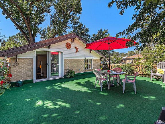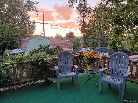 SHOWINGS BLOCKED UNTIL 11-20-24. Welcome home! This well-maintained, comfortable, and clean home is move-in ready. Newer roof (2018), maintenance free gutters (gutter helmets 2019), electric range/oven, microwave, 2 refrigerators (kitchen & garage), freezer (garage), washer, gas dryer, gas furnace and water heater, 12 zone sprinkler system, evaporative cooler and ELECTRIC FIREPLACE. it also is super energy efficient with brick construction, extra insulation blown in the walls and extra attic insulation to keep you comfortable. Attic also provides extra storage space. The main level has an open floor plan and amazing windows that make the most of gorgeous natural lighting with views of the mature trees. The basement is cozy with new carpeting in the 2 large bedrooms, a large family room and a bonus hobby space. The attached 2 car garage is accessed through the basement keeping you warm on frozen Colorado mornings. The garage was brilliantly designed with a flat rooftop and finished with Pro-Top turf grass creating a huge outdoor living/entertaining space with privacy provided by the mature trees and landscaping. Enjoy your morning coffee on the rooftop deck or dine al fresco taking in the west-facing sunset view. You may also prefer to enjoy the outdoors from the backyard covered patio. You'll enjoy the many little destinations in this back yard! The perennial gardens and the wrought iron fenced vegetable and herb gardens. There are two outbuildings - both on concrete pads. One is a metal garden shed and the other is a 10X20 barn-style wood building which includes a loft for storage. This shed has electricity available and features four windows for awesome natural lighting. It could be developed into a home office, amazing hobby space, art studio, Man-Cave or She-Shed of your dreams! Thiis wonderful home offers the best of both worlds. You will enjoy the character and charm it provides or perhaps add your personal style and make it your own.