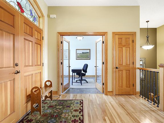 Beautiful custom built rambler with all the amenities you could want and backs up to pond! The exterior features beautiful stonework, woodwork, landscaping and front porch. The main level is built for today's open concept living! Enjoy the custom kitchen, hardwood floors, massive mudroom and laundry room and a beautiful custom entertainment area with built in surround sound and fireplace. Huge Master suite on main with walk-in closet and separate tub and walk-in shower. Rounding out the main level is the stunning sun room off the kitchen, half bathroom & 2 separate offices. Entertaining is made easy when you move to the lower level walkout with a big open spaces, wet bar, gas fireplace, huge study, family room and built to ADA spec for wheel chair accessibility and ALL interior doorways are wheelchair accessible. 2 lower level bedrooms & huge bathroom. Last but not least this home has an elevator that goes from main floor to basement!