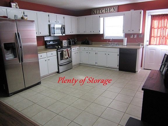 MINUTES FROM ENID LAKE ~3 BR, 2 BA~1 AC Corner Lot~ Open Floor Plan~Plenty of room for a kitchen island or table plus dining area. Kitchen includes new stainless microwave w/ vent fan, 6 mo. old dishwasher & electric range. Family room is accented w/ rustic charm such as laminate hardwoods, tin ceiling, lantern light accents on ceiling fan & electric fireplace. The laundry room & both bathrooms are spacious w/ the master including double sinks. New carpet in 2 bedrooms, new flooring in BA. Additional storage in carport & shed! Tin ceiling in Family Rm can easily be removed if desired.