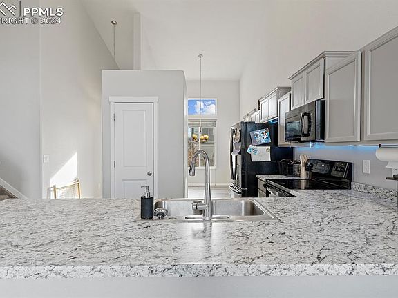Beautiful home with an open concept that opens to the living room and walkout. Vaulted ceiling, recess lighting and a large bedroom on the main floor. This home also has a loft on the upper floor. Attractive wood flooring through out the main area and a kitchen with plenty of cabinets and a pantry. Close to parks, shopping, Fort Carson and Space Command.