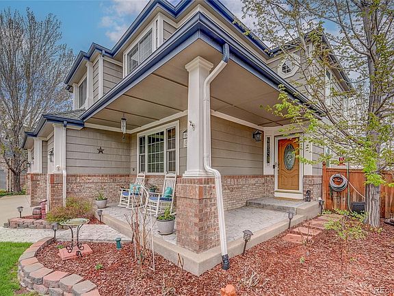 Presenting this spectacular two story home in immaculate condition with finished basement located in Stonegate Village. Stunning custom inlaid hardwood floors that lead to the living room and flow to the dining room with tray ceilings. All new interior and exterior paint with newer carpet and immaculate hardwood floors. Updated kitchen with island, pantry, newer appliances, granite countertops and eat in kitchen surrounded by bay windows. Gas fireplace in the family room also features built in bookshelf and vaulted ceilings. The upper level showcases the main suite with vaulted ceilings, updated on-suite featuring a designer 8 jet shower with temperature display. Double sinks, granite countertops and walk in closet complete the main suite. There are three other bedrooms and a guest bathroom with double sinks and granite countertops to round out the upper level. Finished basement with hardwood floors in second family/game room inclusive of mini refrigerator. There is also an office/craft room with overhead cabinets and an additional well done half bath. Expansive storage in the basement for all your extras. Enjoy the outdoor space with the professional custom stamped patio ('22) this backyard oasis has been renovated with $35,000 of features. Artificial turf, water features, custom lighting and remote wind & UV rated awning and all new privacy fence. No neighbors behind you! The oversized three-car garage is finished with new garage doors and new quiet motors in addition to extended ceilings for maximum storage. Additional Features include: Newer roof (19), all New Anderson Windows, stamped concreted patio front/back, exterior paint, New concrete driveway, Solar Panels paid in full, New AC, furnace and hot water heater, HVAC ducts have been cleaned, furnace and AC serviced and cleaned, new window well covers, smart thermostat, ring doorbell, new privacy fence. Reasonable HOA includes two pools, tennis courts, parks and trails. Douglas County Schools.