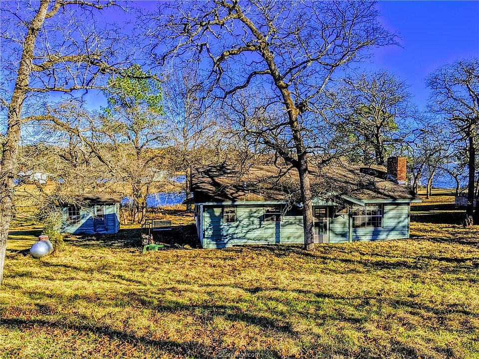 Elevated lot with beautiful views of Camp Creek Lake! The main cabin is a 2 bed, 1 bath built in 1971 on slab with cathedral ceiling and woodburning fireplace that makes for a very cozy cottage in the wintertime. The deck leading out from the house towards the lake offers fantastic views and in the summer time the orientation of the lot is such that the sun is at your back in the hottest part of the day and the near prevailing breezes blowing off the lake also help to keep you cool. The property includes a 14 x 24 shop on slab with metal roof and electricity and an 8 x 14 wood frame camp house that can be used for dry storage or converted to a bunkroom. The boathouse is accessed by a long pier stretching out into deeper water and includes a stall for both a boat and a canoe or jonboat. The 1999 Monarch boat is included with the property and has very low mileage. Franklin ISD, Twin Creek Water, Navasota Valley Electric.