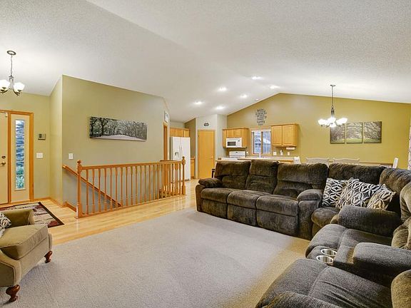This spacious 4 bedroom, 3 bathroom rambler in a kid friendly neighborhood is a true charmer. Open floor plan with soaring ceilings is perfect for entertaining large groups! Main floor master bedroom with main floor laundry is hard to find. The half acre city lot backs up to a pond with a walking path to School Lake. Located near the Chisago Lakes Chain & Carlos Avery Wild Life Area make this the ideal home for the sportsman. Quick drive to the cities.