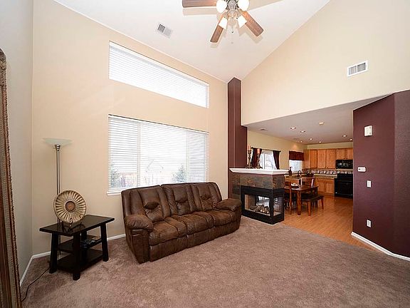 Beautiful 2 story home in Highlands Ranch close to open space! Great location walking distance to the elementary school and around the corner from the rec center, parks, trails, and Southridge Tennis Courts! Enter into the vaulted living room with ceiling fan, newer upgraded carpet and three sided fireplace that opens to the kitchen. The eat-in kitchen offers granite countertops, 42" cabinets, pantry, cast iron sink, new dishwasher and all appliances included. Also on the main level is a powder bath with granite counter and laundry room with built-in cabinets. Upstairs are all 3 bedrooms. The master with ceiling fan and full bath with dual vanity and walk-in closet. The two secondary bedrooms (1 with walk-in closet) share a full bath in the hallway. Upper landing offers a desk area great for studying! Updated fixtures and newer water heater. Outside is a nice, fully fenced yard with patio and sidewalk!