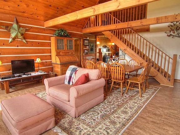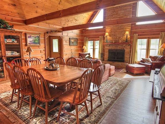 Custom log cabin on gorgeous 12 acres. Home features remodeled kit. w/ SS appl's & hard surface countertops. 5 stall horse barn, beautiful vaulted ceilings w/ beams. New flooring in kit., LR, & MBR. Freshly stained exterior & fully fenced yard.