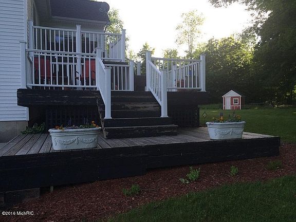 GREAT FIND: WOW,OH, OH, OH, A very well cared for home, professional layout and 9 ft ceilings, large rooms, nice open flow with dining room area facing nature as you watch the deer-turkey roam buy, with a deck just outside the dining/kitchen area. The dining, kitchen and living room areas all open flow, very neat, in new condition. Large bedrooms and potential to add another bedroom in the finished/walkout basement, walkout to a patio to the north. Large yard open type setting around home/circle drive, into wooded areas, two PARCELS & ADDIT MORE LAND AVAIL with tillable land. A mini-farm, get-a-way, or as is for a very well designed home you will be proud of & enjoy, with lots wildlife, blacktop roads just down road and off to M-57 onto X131 into Rockford, Cedar Springs CALL agent Short Notice SHOWS