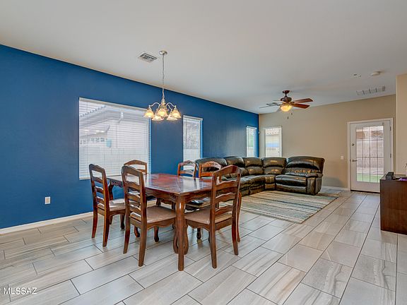Great 3 bedroom, 2 bath 1517 Sq Ft home located right across the street from the neighborhood park. Open floor plan features a great room with dining space, large eat in kitchen, split bedrooms and laundry room. Kitchen has updated stainless steel appliances, gas range and pantry. Beautiful new tile floors throughout main living areas. Other extras include: ceiling fans, window covering and security doors. Relax in the low care backyard, patio with extended pavers plus artificial grass. Or enjoy the community pool, spa, basketball court, clubhouse, ramadas, parks and trails. Located in The Award Winning Vail School District.