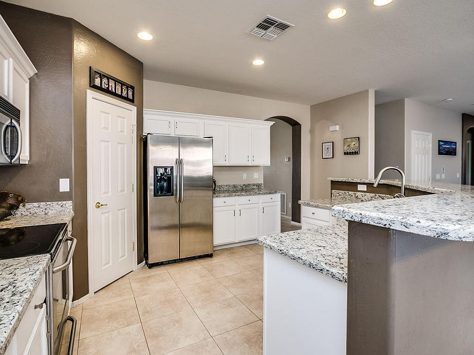 Price reduced! Upgraded 4 bedroom, 3 car garage home with a pool in desirable Villages of Eastridge! The remodeled kitchen showcases brand new granite counters & white cabinets, large island with breakfast bar, stainless steel appliances, walk-in pantry and a breakfast nook. This home has lots of tile, updated lighting and neutral colors throughout, and a bright/open floor plan with a formal living/dining room, and separate family room. Downstairs features an extra office/den or spare bedroom. The loft provides extra space for a playroom or extra living space. The huge master bathroom has new wood plank tile. The spare rooms are spacious with large closets. Outside you will find a beautiful sparkling pool and lots of space for relaxing and entertaining!