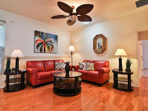 Welcome to Greenfield Plantation, Welcome Home! From the moment you open the front door, this comfortable home invites you in to an open, spacious interior. This lovely 3 bed, 2 bath split floor plan is located on a large corner lot. Beautiful Hardwood floors throughout the main areas. The kitchen & family room have an open floor-plan layout for easy living. Formal Living room & dining room. Enjoy your morning coffee or an evening with the family on the over-sized lanai featuring a solar-heated saltwater pool & spa. The pool deck also has an outdoor shower, and newly screened lanai. Enter the pool & lanai area through the Sliding glass doors from the Living Room/Breakfast nook, guest bedroom or Master bedroom. Split bedrooms w/ Master bedroom on one side & guest bedrooms on the other. Master has 2 closets, "His and Hers", an en-suite bath w/ garden tub, separate walk in shower & water closet. Old Grove, in the desirable Greenfield Plantation, is conveniently located in a rare "walk-to-school" neighborhood. A-rated elementary & middle schools are just a short walk away. A-rated Braden River High School is 15 minutes away. Close to shopping, restaurants, & I-75. Easy access to downtown Sarasota, Tampa International Airport & world renowned Beaches. Minutes to the restaurants, shops & theaters of Lakewood Ranch Main Street. Low HOA fees and no CDD fees. Golf course community with optional membership. Perfect combination of amenities for a happy new owner to call home! BOM Buyers financing fell through.
