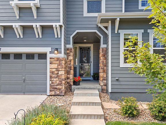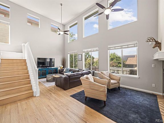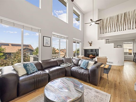 Beautifully maintained and thoughtfully updated, this 4-bedroom home showcases stunning mountain views and multiple outdoor living spaces. Nestled in The Hearth, one of the most sought-after communities in Highlands Ranch, it is close to parks and the Southridge Recreation Center. With more than $50,000 in recent improvements, this home is move-in ready. From the moment you enter, vaulted ceilings and abundant natural light create a warm and inviting atmosphere. The family room features a wall of windows framing picturesque mountain views and a cozy gas fireplace that can also be enjoyed from the adjacent living and dining areas. Newly refinished hardwood floors flow seamlessly throughout the top two levels. The updated kitchen is both stylish and functional, featuring an island, new countertops, a added range hood, all-new appliances, and a RO water filtration system. The adjoining breakfast nook doubles as the perfect home office or study space. A separate dining area with custom cabinetry, a wine fridge, and a view of the fireplace makes entertaining a delight. Upstairs, the primary suite includes a private balcony with 180-degree views of the Front Range. The spa-inspired bath offers a soaking tub, dual sinks, ample cabinetry, and a spacious walk-in closet. Two additional bedrooms, a full bath, laundry, and a loft that can serve as an office or fifth bedroom complete the upper level. The walk-out basement expands the living space with a large entertainment area, an additional bedroom and bath, and generous storage. Step outside to enjoy a private retreat with an expanded deck, a flagstone patio, and a beautifully landscaped yard. NEWER:roof, gutters, exterior paint, HVAC, washer, water heater. Enjoy all that Highlands Ranch has to offer with miles of walking trails, parks, four state-of-the-art recreation centers with pools, fitness facilities, sport courts, and access to top-rated schools. Home qualifies for 1% rate reduction first year with preferred lender!