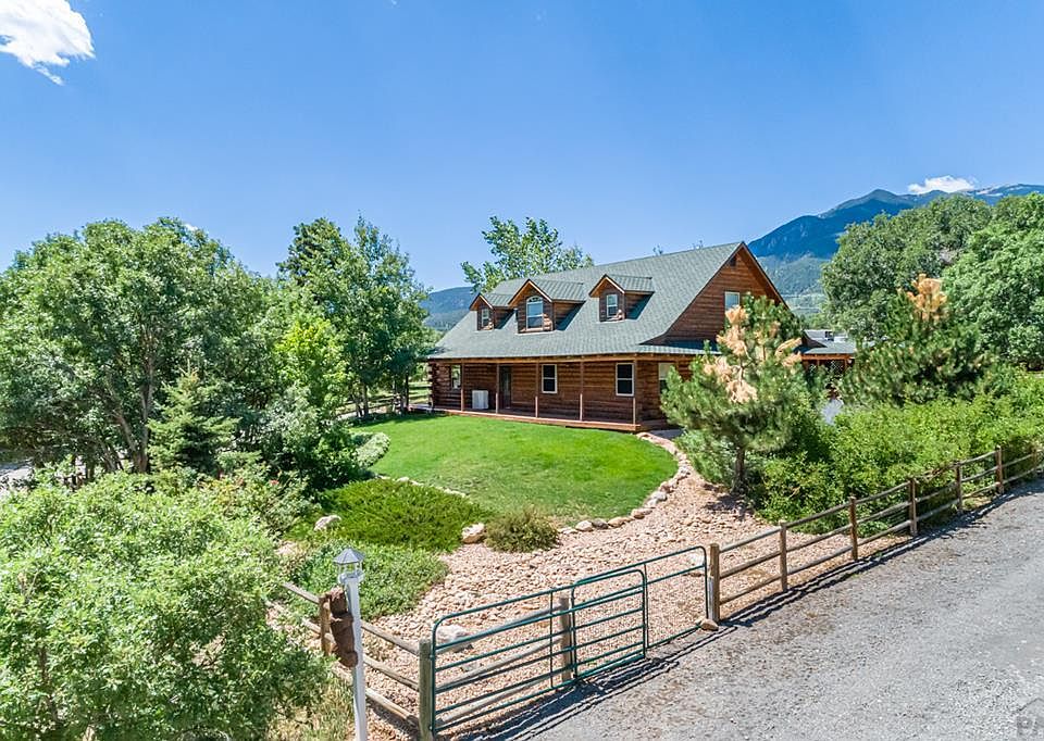If you've been dreaming of a mountain log home THIS IS IT!! Situated on 2.01 acres nestled in trees below Greenhorn Mountain, this custom log home boasts 3 bedrooms (main-level master), 2.5 baths, open floor plan, office, loft sitting room and wrap-around covered deck. Master bedroom has a 5 piece bath with jetted tub, walk-in closet and french doors that open up to covered bridge leading to the covered hot tub! Kitchen has hickory flooring and cabinets, stainless steel appliances, double convection oven, breakfast bar and large dining room. Escape the chaos in the serenity of a yard meant for entertaining or relaxing. Fully landscaped yard includes open patio area, grass, perennial gardens, pond w/ fountain, covered 9'x98' covered patio, dog kennel and greenhouse. HEATED 30' x 90' Cleary building has 4+ car garage, workshop area and GUEST QUARTERS with 3/4 bath and laundry! This space can also be used as a studio, office, homeschool room, rec room--the possibilities are ENDLESS! Rinnai tankless water heaters in house and garage/shop. 2 RV Hook-ups--1 full hook-up including propane, 1 is just electric and water. Both home and guest quarters have ventless wall-mount A/C that can also be used for heating. Both house and garage/shop have water filtration/softener systems. House has Reverse Osmosis connections for the kitchen sink and refrigerator. 10x10 shed and 12x24 shed to store all your toys.