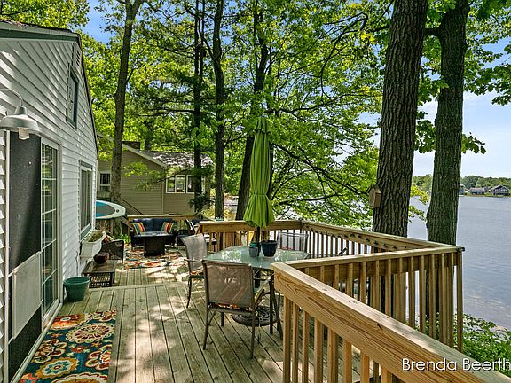 Experience lakefront living at its finest in this charming two-bedroom, one-bathroom cottage on private all sports Scram Lake. Enjoy the breathtaking sunsets from your spacious deck expanding your outdoor living and entertainment needs, and also provides easy access to your private sandy beach with 50' of frontage. Perfect for swimming, sunbathing, and building sandcastles. The living room and kitchen (with new stainless appliances) provides space for gatherings and enjoying quality lake time or a quiet evening in. The bedrooms are cozy and comfortable, and a newly remodeled bathroom with washer and dryer. Some updates include a new roof, insulation, gutters with gutter guards, and a custom shed for additional storage. Don't miss out on the chance to own this beautiful cottage!