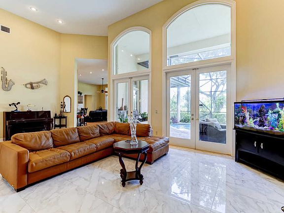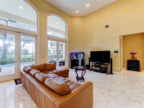 GORGEOUS 3 BEDROOM PLUS WOOD PANELED OFFICE W/ VOLUME 16 FEET CEILINGS THROUGHOUT. AMAZING LONG VIEWS OF LAKE & GOLF COURSE. ROOF 2017, HEATED SALT POOL & SPA W/AUTOMATION, REMOTE & COLOR LIGHTING. DOUBLE FRONT ENTRY DOORS LEAD INTO HUGE LIVING ROOM WITH SOARING CEILINGS & WALL TO WALL FRENCH DOORS WITH DIRECT ACCESS TO FULLY SCREENED LANAI. 3 SPACIOUS B/R'S PLUS CUSTOM WOOD PANELED OFFICE. LARGE OPEN KITCHEN CONNECTS TO FAMILY ROOM & HAS OPEN VIEWS TO POOL & BACKYARD. MASTER B/R SUITE IS SUPERSIZED WITH OVERSIZED SPA/BATH & 2 HUGE WALK IN CLOSETS. MANY UPGRADES INCLUDE DOUBLE GLAZED WINDOWS, ACCORDION STORM SHUTTERS, LANAI SCREEN ($40K), MAIN AC '17, 2ND AC '15, WATER HEATERS (2010 AND 2018), DISHWASHER '17, COOKTOP '18.