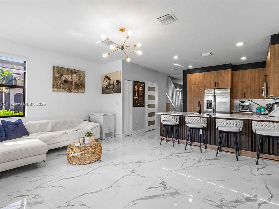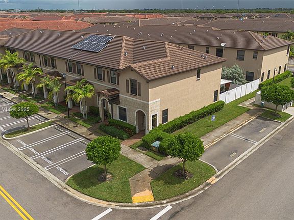 There's no other villa with these upgrades in Hialeah Heights. As a corner unit of 3 beds, 2.5 baths, located in Aquabella, it offers enhanced privacy and natural light. The ground floor and stairs feature a mix of porcelain tile and laminate flooring, while the second floor is entirely porcelain tile. Fully renovated kitchen with a contemporary and elegant design with quartz countertops, quality cabinets. The living room includes built-in closets for extra storage and an electric fireplace that adds warmth and style. European interior doors with magnetic locks, adding a touch of exclusivity. Aquabella offers controlled access, 2 clubhouses with resort-style pool, gym, game room, community lake, kids' park & more.Its location provides quick access to major roads,schools,shops & rstaurnts