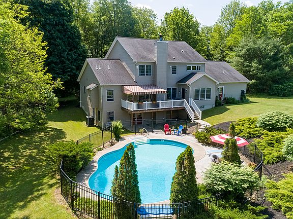 ENJOY THIS COUNTRY ESTATE SETTING WITH THIS 3414 SQ. ST. COLONIAL LOCATED ON 3 + BEAUTIFULLY LANDSCAPED ACRES. FIRST FLOOR FEATURES INCLUDE A LARGE COUNTRY KITCHEN WITH GRANITE COUNTERTOPS, CENTER SERVING ISLAND, BUTHER'S PANTRY, FAMILY ROOM WITH WBFP, FORMAL DINING ROOM, LIVING ROOM,MASTER BEDROOM WITH GAS FIREPLACE AND A PRIVATE MASTER BATH, MUD ROOM AND A TWO STORY FOYER. THE SECOND LEVEL HAS THREE LARGE BEDROOMS, LOFT/OFFICE AND A FULL BATH. EXTERIOR FEATURES INCLUDE A 6 X 38 COVERED FRONT PORCH, 10 X 29 REAR DECK OVERLOOKING A 20 X 40 INGROUND SALT WATER POOL. ADDITIONAL FEATURES INCLUDE CENTRAL AIR CONDITIONING, FULL BASEMENT AND A EXTRA LARGE TWO CAR GARAGE WITH EXTRA STORAGE AREA. DON'T MISS THIS CUSTOM HOME BUILT BY C B L SNYDER. SQUARE FOOTAGE OF LIVING AREA HAS BEEN VERIIED AND IS 3414 SQ. FT. THE PROPANE STORAGE TANK IS LOCATED ABOVE GROUND ON THE SUBJECT SITE. 2019-20 SNOWPLOWING PAID, 8 + CORDS OF FIREPLACE WOOD INCLUDED IN SALE PRICE.