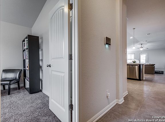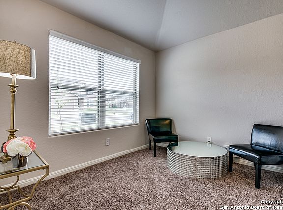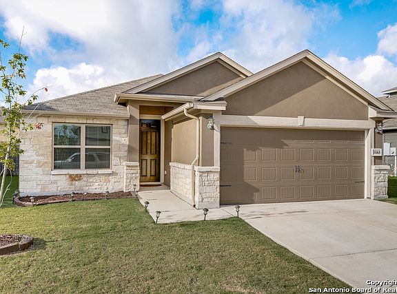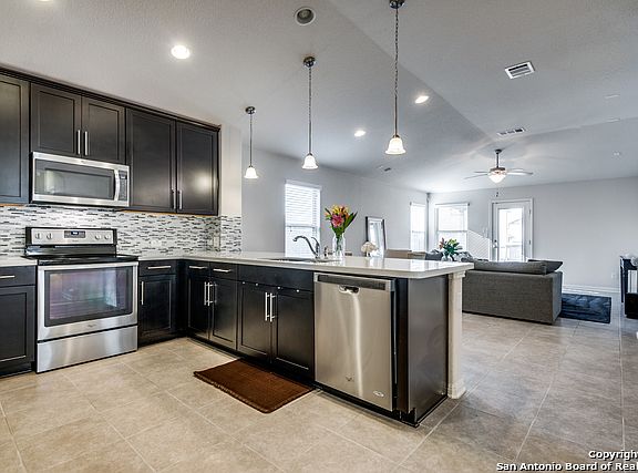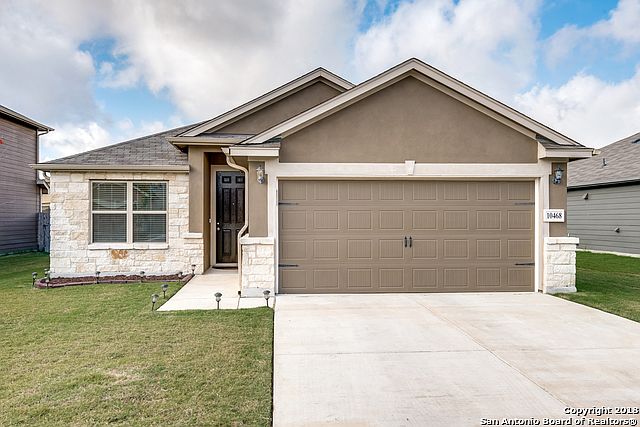 Welcome home to this gorgeous open floor plan. Upon entry you have a bedroom followed by a gourmet kitchen with upgraded cabinets, granite countertops, tile backsplash and large family room. Two additional bedrooms are right off the family room including the secondary bath. A private master suite with spa like bath and huge walk in closet follows. Finally you have the back yard with covered patio. Community in close proximity to shopping/dining, military bases Ft Sam, Lackland & Randolph AFB and Riverwalk
