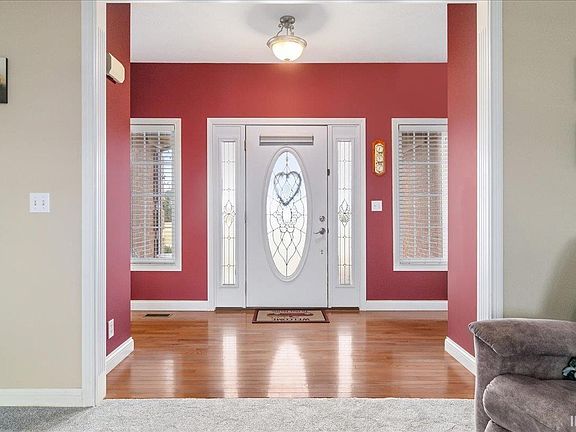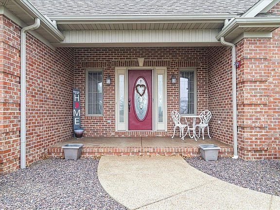 Exceptional custom built 3 bedroom, 2 bath brick ranch with a great floor plan. Desirable & Beautiful entry with hardwood floors open to the great room with cathedral ceiling & corner gas fireplace. Beautiful kitchen with custom amish cabinets, island with sink, and pantry with pull out drawers. Breakfast nook adjoins kitchen with access to the back patio and there is a separate dining room with cathedral ceiling. Split bedroom design gives seclusion to the master bedroom which features tray ceiling with light behind the crown molding, large bath with double vanity, corner garden tub and separate shower. Additional 2 bedrooms, one with cathedral ceiling are connected with a full bath. Attached side load 2 car garage with pull down stairs with storage above. Plus, an additional detached one car garage for another car or recreational vehicles. .53 Acre corner lot offers exterior lighting, aggregate sidewalks, driveway and privacy fence. A one year American Home Shield Warranty will be provided for Buyer. As per seller: Tankless Water Heater 2023, Furnace & AC 2022, Sliding Screen Door for the front door 2024. Centerpoint for Gas & Electric, Gibson City Water & Haubstadt Sewer.