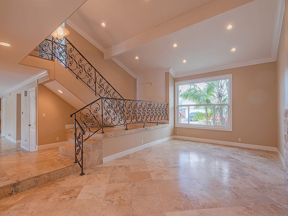 Highly upgraded pool home in the very desirable Greenbook tract of Fountain Valley. This home features upgrades from the moment you walk in with travertine flooring, custom wrought-iron railing, crown molding, baseboards, recessed lighting, custom stonework on the fireplace and the list goes on. The kitchen has been tastefully upgraded with granite counters, stainless steel appliances and custom cabinets. Another nice feature is the main floor bedroom and full bath. The over-sized master bedroom features valued ceilings with recessed lighting, a beautifully upgraded master bath with and custom walk-in closet as well as an expansive patio with sliding glass doors. Some of the other upgrades include air conditioning, newer windows, lush landscaping and cabinets in the garage. The backyard helps complete this beautiful home with a large swimming pool and spa, built-in BBQ and fruit trees. The location is absolutely ideal with easy access to food, shopping and within a mile to the nearest freeway entrance.