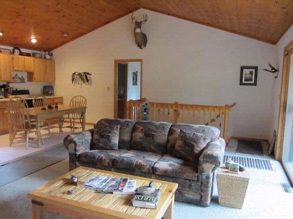 Beautiful lake Home with bright and airy open concept kitche, dining area and living room. Vaulted wood ceiling with patio doors to the lakeside sundeck. Great screened porch with doors to the sundeck and to one of the Master Bedrooms. There are 2 Master Bedrooms each with its master bath and walk-in closets. Views of McCormick lake from all of the rooms. McCormick lake is 118 acres of beautiful water and is an all sport lake. Sand and rock for swimming at the 161 ft of frontage. Enjoy ATV trails to the willow flowage. Full basement with a finished area for a office or a computer room. Also in the lower level there is a wood burning stove. Sit on the deck or in the screened porch and take in the beauty of this pristine lake. The 2 car garage is oversized for storage needs. Come and view this attractive log sided home- even has central air WOW. (Listing 6237432 Confirmed 9/5/2013)