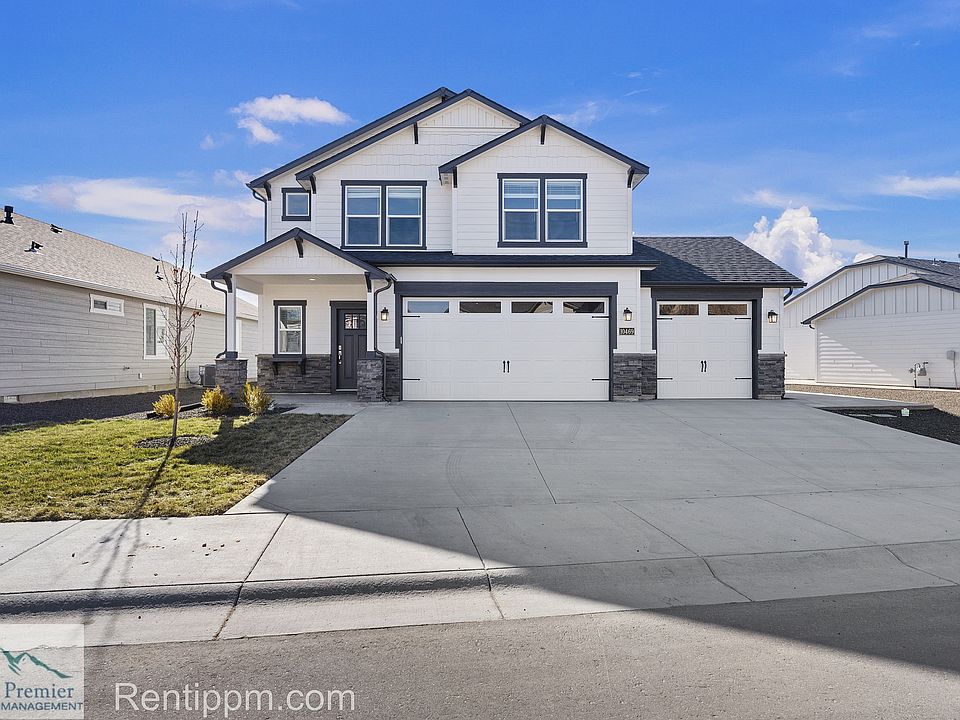 Looking for your dream home? Look no further! This stunning new construction offers the perfect blend of luxury and comfort. The house boasts 3 spacious bedrooms, 2.5 baths, and a large open loft area each designed with a modern touch and premium finishes. The main floor features hardwood floors that flow seamlessly throughout, creating a warm and inviting atmosphere. The open-concept living room and kitchen are perfect for entertaining, with granite countertops and stainless steel appliances adding an extra touch of sophistication. The covered patio out back is perfect for enjoying the scenic view of the mountains to your left & right! Enjoy the convenience of a three-car garage for all your storage needs. With 2,250sqft of living space, located in Trident Ridge with easy access to down town Star & the golf course - this home is perfect for families or those in need of more room to spread out.