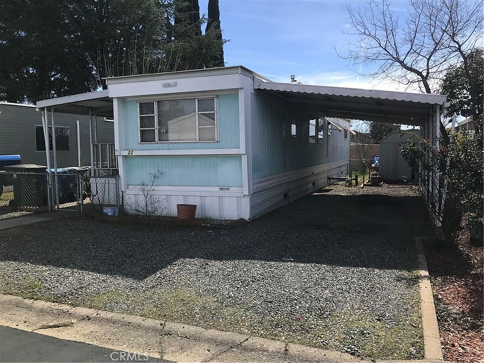 Come see this character cutie in a close-in 55+ Mobile Home Park! There is a lot of the original unpainted interior wood. Amazing built-in dressers! Huge covered side porch and a cute covered front porch. This yard is perfectly fenced for a fur baby. There is a carport and shed too!
