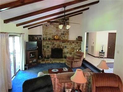 Very spacious one level living Ranch w/laundry on main, in a private setting; Covered deck to enjoy the outside. A very lrg Kit. & breakfast area, large family rm w/floor to ceiling stone FP, DR, MBR & BR 2/3 all w/ walk-in closets, mudrm on main level & central vacuum system. Lower level offers den w/lrg Bricked FP, workshop + oversized 2 car garage. All this with fenced yard.