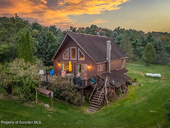 Tranquility awaits you with this log sided chalet home with gorgeous views on 5 acres just over the PA NY border. Sit on the lovely wrap around deck and watch the sun set. This home features granite kitchen countertops and open concept living area. The basement features a small sauna, walk out basement and is just waiting for you to refinish it as you wish for extra living space and storage. Work from home? High Speed internet available thru Spectrum., Baths: 1 Bath Lev 1,Other - See Remarks,Half Bath - Master, Beds: 2+ Bed 1st,Mstr 2nd, SqFt Fin - Main: 960.00, SqFt Fin - 3rd: 0.00, Tax Information: Available, SqFt Fin - 2nd: 640.00, Additional Info: Perfect location for a hobby farm. Small pond on the property. Fruit trees, rhubarb and blueberry bushes. Near the NY Border for easy access to the Triple cities but with low PA taxes. OGM rights transfer to the buyer.