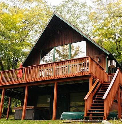 A unique Waterfront property on a pond overlooking the Lake!This property boasts breathtaking waterfront views, perched high above a pond with a magnificent fountain--the community-owned land across the street guarantees unobstructed views of the picturesque lake.The house's interior has been tastefully updated to include modern kitchen cabinetry and granite countertops, updated bathrooms with modern fixtures, lighting, and tile surrounds, and a brand new Modern Flames electric fireplace with a stone finish and wooden beam mantle. Premium vinyl flooring throughout the first floor, virtually indestructible This End Up Furniture in the living room, loft, and main level (couch, loveseat, chair, pullout couch, queen and 2 twin bed frames).Stay cozy with the energy-efficient furnace, updated <5yrs. Relax in the 5-person hot tub or enjoy water activities with the provided equipment: 1 canoe, 2 kayaks, paddles, kayak carts, and life vests.Relax with an Xbox Series S and 2 controllers, or by the electric fireplace in the loft. All appliances, including a washer and dryer, are provided. The walk-out basement has the potential to be finished for additional living space and comes with a utility cabinet, workbench, and slop sink. Don't miss the chance to own this stunning property with waterfront views and modern amenities.