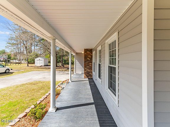 Nestled in the heart of Bellefern in Trent Woods, this 5-bedroom residence embodies versatility and spaciousness .A delightful wrap-around porch welcomes you, providing an ideal spot for leisurely afternoons. The rear of the house features a deck and an outdoor shower. Upstairs, you will discover the five inviting bedrooms and three bathrooms, including a primary suite boasting a charming fireplace and a separate cozy sitting area perfect for an office. On the lower level, elegant living and dining spaces, a comfortable den with a fireplace, and a generously sized kitchen with a picturesque backyard view await exploration. Step out to the screened porch for a refreshing breath of air. The home is hooked to natural gas for the tankless water heater and gas logs. There is an additional electric water heater for two upstairs bathrooms. This home offers a welcoming and snug retreat awaiting your presence.