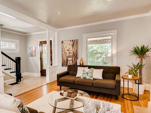 This fabulous 2 story sits on a great block in the heart of Congress Park, walkable to the shops and restaurants on 12th Avenue, and to Congress Park and City Park. Sit back and enjoy summer evenings on the expansive wrap around covered front porch, or grill and have dinner on the back deck. Inside, you are greeted in the foyer with high ceilings, hardwood floors, a fabulous fireplace, and lots of windows for good natural light and a historic turn of the century feel throughout. Spacious, open living and dining areas... great for entertaining. French doors from the dining room to the 2 level deck and back yard. Remodeled kitchen and a true walk in pantry. 2nd floor has 3 bedrooms on one level, and master bedroom features 8'x8' windowed space for an office or sitting area. Finished basement with family room, gas fireplace and 3/4 bath. Newer oversize 2 car garage to accommodate both your cars and all your extra toys.