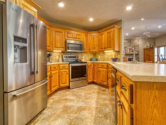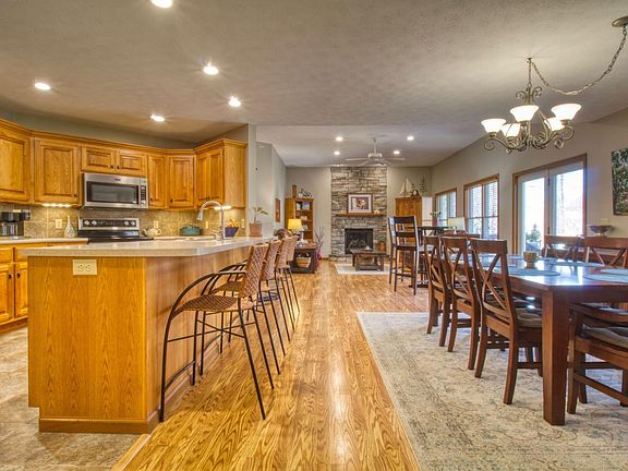 This exquisite new listing is a spacious retreat offering nearly 3800 square feet of finished living space, featuring 5 bedrooms, 3 baths, and an attached 2-car garage. Entertain with ease in the open concept split bedroom floor plan, where the main level showcases a large living room adorned with 10-foot ceilings and a cozy fireplace. The ample eat in kitchen provides plenty of counter space, while the large dining room sets the stage for gatherings. Retreat to the ensuite primary bedroom for ultimate relaxation, or utilize the large den/office/bedroom for versatility. With two additional bedrooms, a convenient laundry room with a utility sink, and access to the expansive backyard deck, this home offers both comfort, plenty of storage, and functionality. The finished walkout lower level adds even more allure, featuring a guest bedroom, wet bar, full bath, and a large family room with access to the new concrete patio and firepit—perfect for hosting guests or enjoying peaceful evenings outdoors. Experience privacy and convenience in this prime location within the city limits of Warsaw. Don't miss your chance to make this exceptional property your new home!