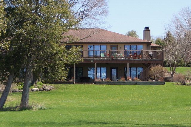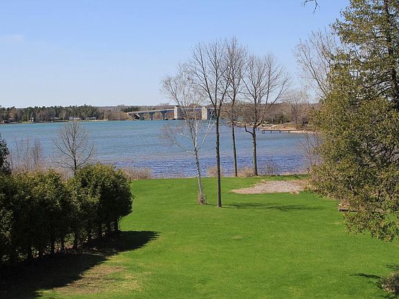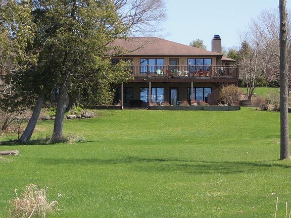 Rare opportunity in city with water frontage on over 3 acres! Gorgeous sunsets year round. This beautiful home has the tranquil feeling of living in the country and yet it is located just minutes from downtown. Sit on the deck and enjoy serenity! Perfect for entertaining, family gatherings, and daily living. Two fireplaces. Walkout basement with custom bar. Below assessed value. Seller is related to agent.