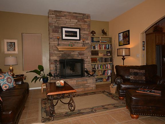 Top of the world views! Beautiful Mark Fenn Custom home with massive wood accents, metal roof, panoramic views and 10.08 acres! Upgrades galore in the immaculate home. Wood Burning Fireplace and Built-in book case in the Living Room. Built-in China Cabinets in the Dining Area. Spacious kitchen with loads of cabinets, breakfast bar, stainless steel appliances and Corian Counters. Covered Front and Rear porches. Fenced area for pets in the side yard. Low care landscaping and VIEWS ! Serene and gorgeous ! Private well and two well shares with adjoining well.